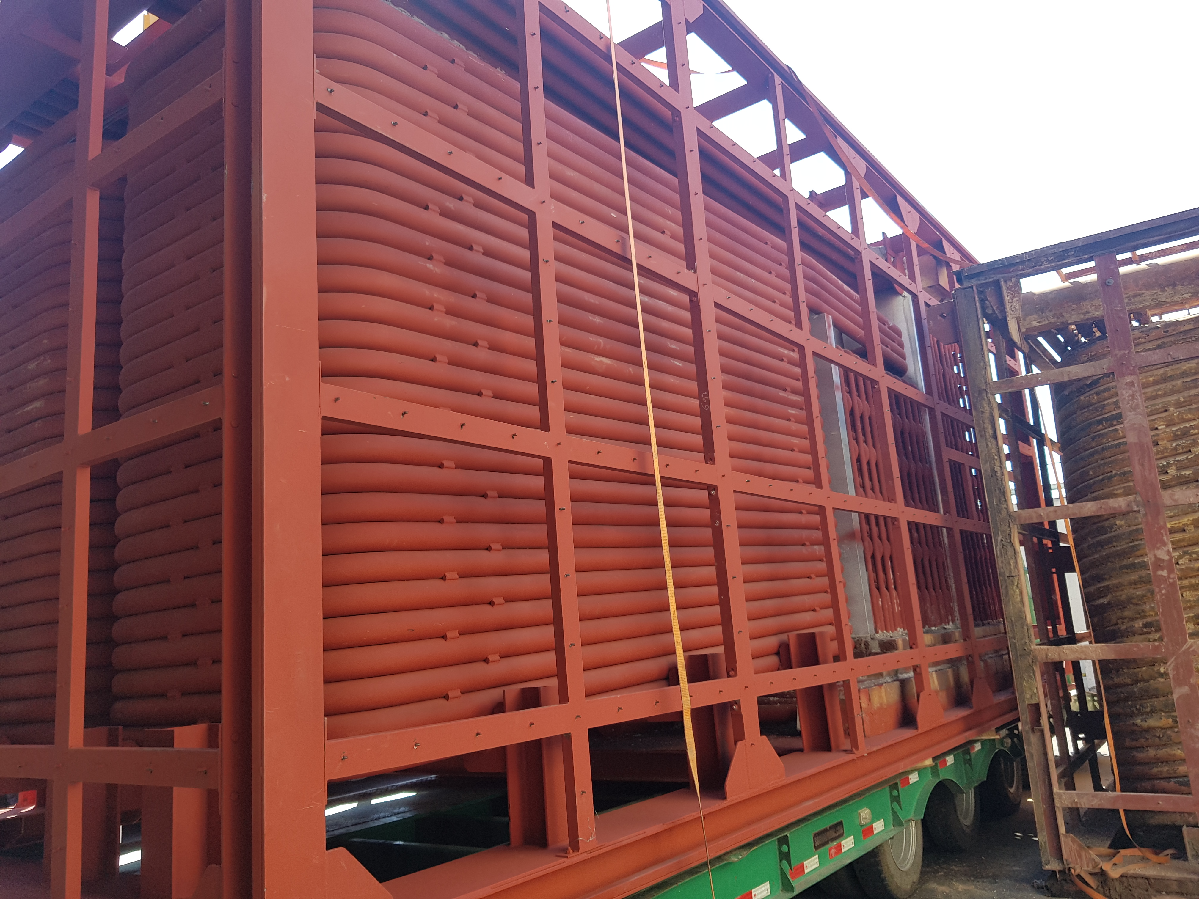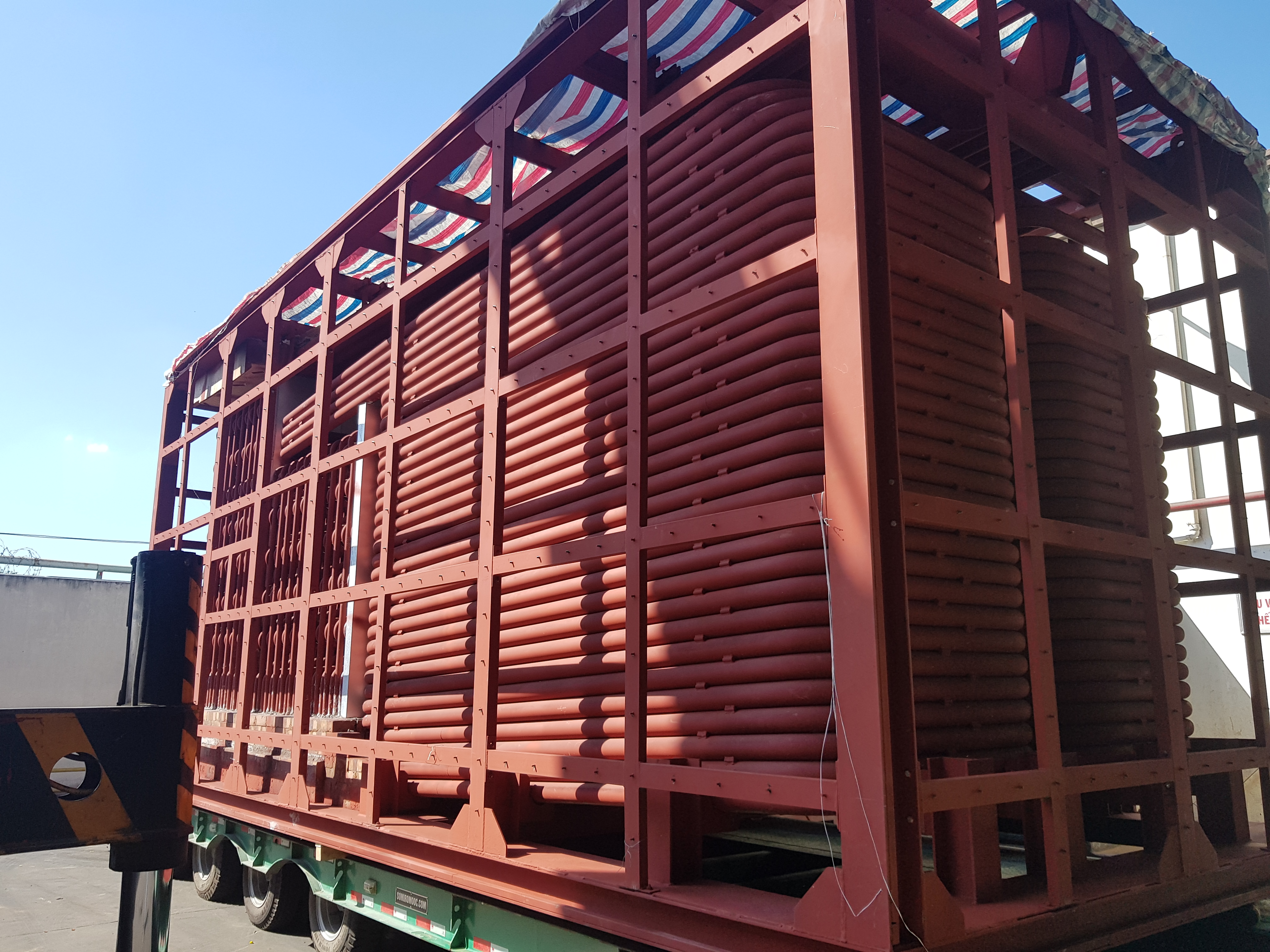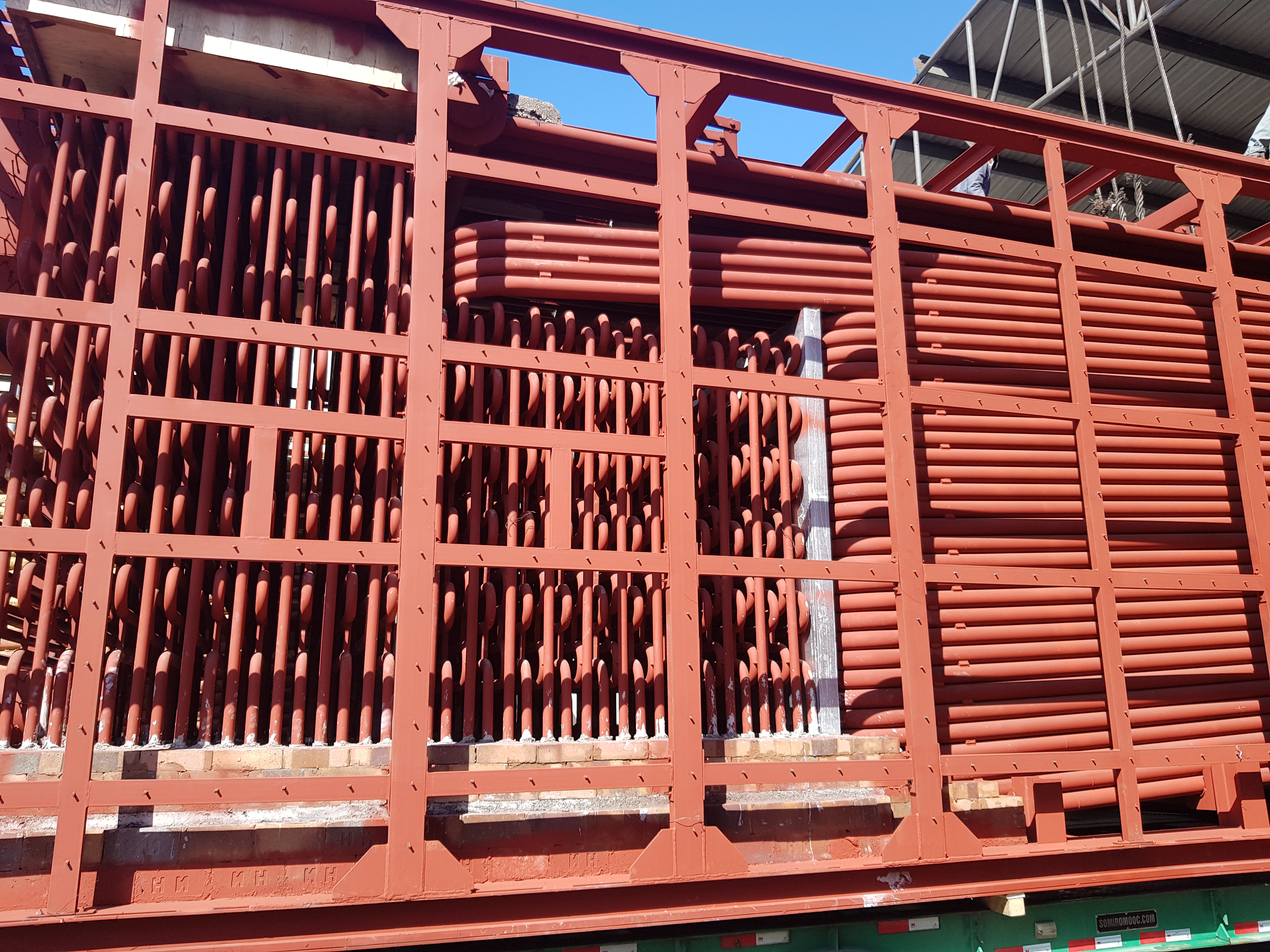 - Buồng đốt - thân lò: Được thiết kế để đốt triệt để nhiên liệu và hấp thu nhiệt tốt nhất cho quá trình gia nhiệt dầu. Bao gồm các thiết bị như: Ghi xích, buồng đốt, quạt gió cấp 1, quạt gió cấp 2, giàn ống hấp thụ nhiệt bức xạ, giàn ống đối lưu.
